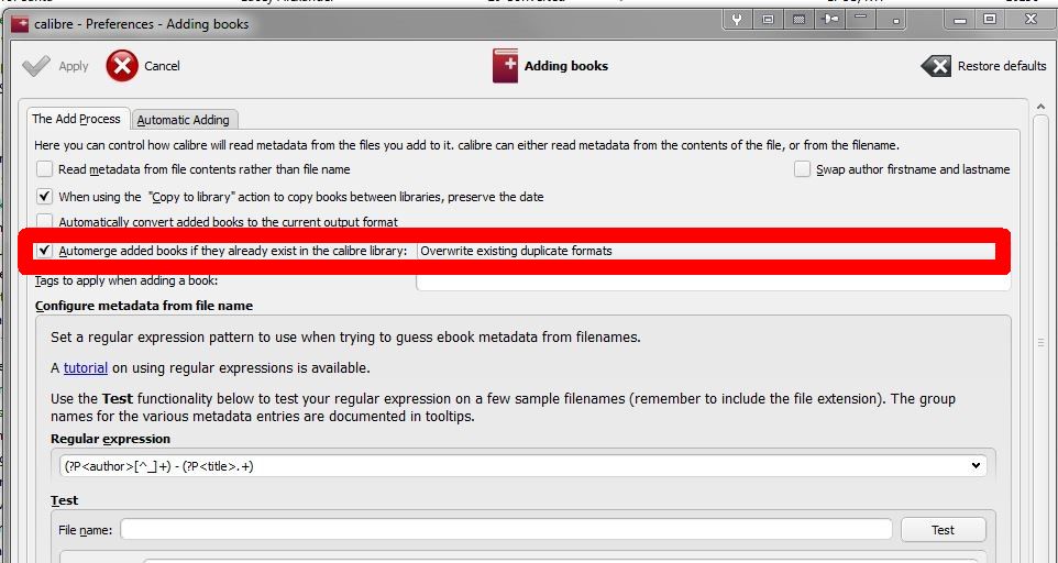 Have you tried tapping the Home key after you do a merge with 'M' - with luck you should get the up/down arrow keys back - much easier than the mouse. See first image - its a stock apple keyboard. If you're using a Macbook, then see this for Home, End etc shortcuts http://apple.stackexchange.com/quest...pageup-in-os-x When you add books you can get Calibre to merge duplicates - its in the Control Add preferences. See second image. And there's also a very good Plug-in - Find Duplicates - that can be useful for resolving duplicates. BR |