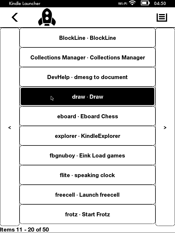 Ill have a play mate : ) and index it if you like tomorrow some time. EDIT: Okay I had a play... First thing I would change: run lipc-set-prop com.lab126.powerd preventScreenSaver 0 before the apps starts.. Or even better check the state is NOT 1 via lipc-get-prop com.lab126.powerd preventScreenSaver and if it is Toggle it to 0 and then back to the original state on program exit ... Since the PREVENT SCREENSAVERS button will leave people locked in the app... (what? as if I would be that stupid... Okay so I did that hehehe )but all in very nice extension. thanks! (with that caveat) Oh and it works via VNC for the really serious artists like me