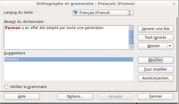 ![]() hunspell le glouton hunspell est le programme standard de vérification orthographique utilisé par pratiquement tous les programmes open-source et au-delà. Si vous ignorez son nom, c'est parce qu'il est le plus souvent utilisé par le biais d'autres programmes. Il est cependant très probable que vous l'ayez déjà utilisé sans le savoir. La technique de correction orthographique utilisée avec OpenOffice (ou LibreOffice) fait ainsi appel à hunspell. Cette technique a fait ses preuves. Elle est même très éprouvée... Elle se caractérise par le recours systématique, certains diront processionnel, à une fenêtre de dialogue, comme sur la copie d'écran ci-jointe. Cette manière de procéder n’est pas due au programme hunspell. Celui-ci est en effet capable de performances étonnantes, à condition d’être utilisé différemment. *** Il est proposé une technique de correction différente, basée sur l'idée de liste, où le recours à cette fenêtre de dialogue ne se fera plus que sur votre demande. Cette technique, qui combine plusieurs programmes standard, ne fonctionne aujourd'hui que sous Linux. J'aurai bien aimé pouvoir la proposer pour d'autres systèmes d'exploitation mais je ne sais pas le faire. Il serait prétentieux d'affirmer qu'elle puisse remplacer la technique standard. Il est seulement espéré qu'elle puisse s'avérer utile dans certains cas, notamment pour celui de livres au vocabulaire étendu. Elle est à prendre telle quelle et fournie sans garantie d'aucune sorte. Vous trouverez dans le zip ci-dessous deux mini-scripts (tous deux en version anglaise et française), des exemples créés à partir d'un fichier source odt (hussarde) ainsi qu'un PDF (hunspell le glouton) présentant de façon détaillée la mise en œuvre de cette technique. Last edited by roger64; 02-01-2013 at 08:25 PM. |