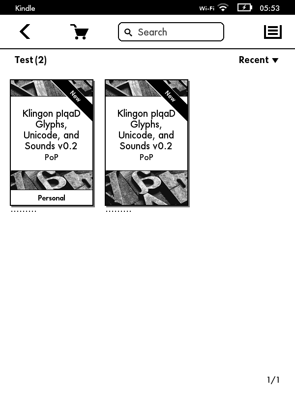 Alternately Gluggy's excellent Java Mobi Editor could be used to only insert a EXTH 113 record with no further conversion (Which I will prefer if it works, since the conversion removed my "embedded" font). Anyway, could someone with a touch try the "cover view" and report with this Calibre converted ebook:Klingon pIqaD Glyphs, Unicode, and Sound - PoP.mobi and with this ASIN-added-only ebook:Klingon with ASIN.mobi Last edited by PoP; 03-03-2013 at 11:06 AM. Reason: emphasize my plea |