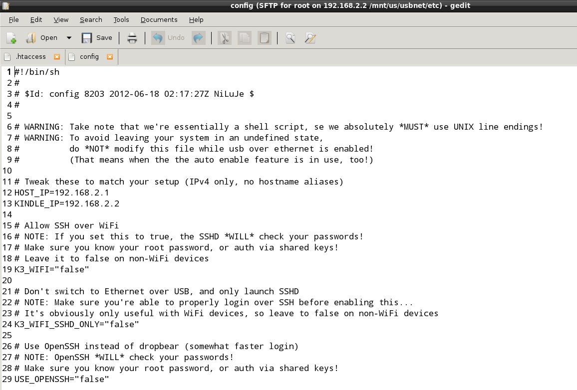Note that twobob's settings as shown reflect the defaults. You need to follow ixtabs advice to change it (or, as I told you, change the settings of your LAN). Use an editor to edit the "config" file according to ixtabs post. Change the RNDIS interface IP accordingly.