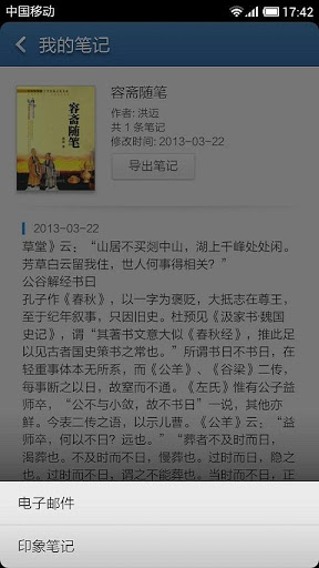 DkReader 1.0.0-1061.apk.zip System requirements: Android 2.2 Edition highlights: Text layout is very good, contains two alignment, punctuation compression, processing rules ban row, pitch adjustment, and many other publishing properties; Interface design is simple and easy to operate, flip effect is quite natural; Intelligent Fragment support TXT, bookmarks, adjust brightness, size, conditioning and other functions; Support multi-touch; Experience function, the user can read the history of statistics and other relevant data; Support to facilitate the local library to import; Look for Android installation steps: To see more of the installed version copied to the phone memory card; In the phone's "file manager" to find the copy of the installed version; Click the pop-up version of install screen, click "Install"; Installation success or failure of the interface will give the appropriate message "application is installed," or "application is not installed." Note: currently only supports TXT format, later we will support more formats. (quoted from this page) official forum Screenshots Spoiler: