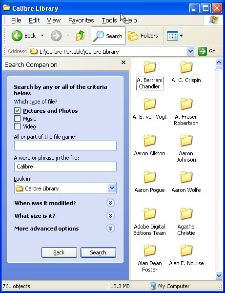 4. You will be reading the Calibre Library folders, so you need to be careful not to add, remove or change anything in them