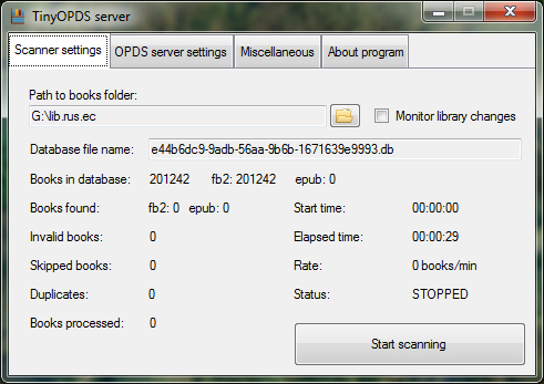 I'd like to introduce TinyOPDS server: a lightweight, simple and effective, open source OPDS server, written on C#. Project home page: https://tinyopds.codeplex.com Supported languages: English & Russian Supported ebook formats: fb2, epub (and these formats in zip archives) Sorry, there are no English "howto"/wiki/FAQ - I'm very short in time now (and - helpers wanted!). Also, developer's guide and planned features will be published soon. However TinyOPDS is a really "one click" solution, so I don't expect much questions "how to use it?" ![]() Enjoi! Last edited by SeNS; 04-15-2013 at 04:15 PM. |