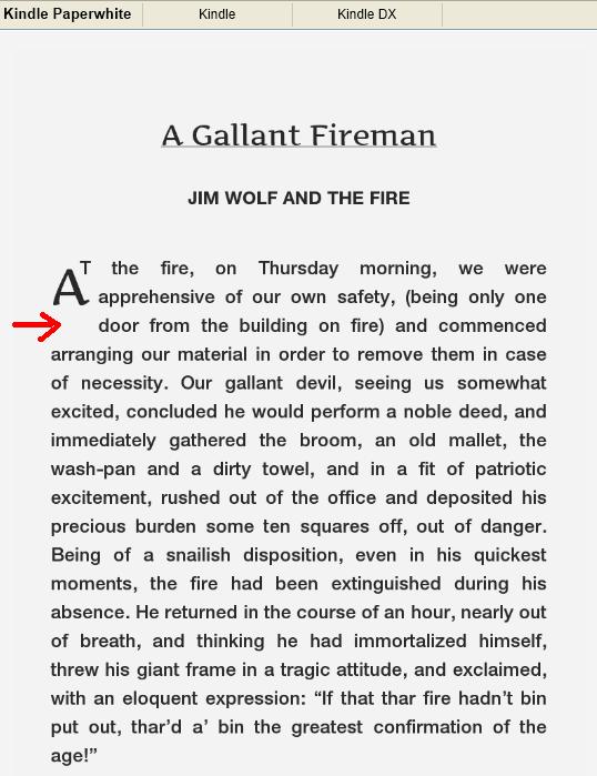 I usually only upload hybrid files, when I embed fonts and otherwise non-KF8 .mobi files. (If you use KindleGen with the -c2 option, hybrid .mobi files are on average only 10-20% larger than the corresponding ePub files after stripping the source files.) As I mentioned before, creating KF8 files from ePub files isn't that complicated. Since your books usually already contain an inline TOC and guide items for TOC and cover, you'll only need to add another Text guide item for the Kindle Start Reading location and slightly change the dropcaps style. To give you an idea what your book looks like on Kindle, I took 4 screen captures of your latest Mark Twain book: Kindle Previewer, Kindle for PC, K3 with embedded fonts and K3 without embedded fonts. |
