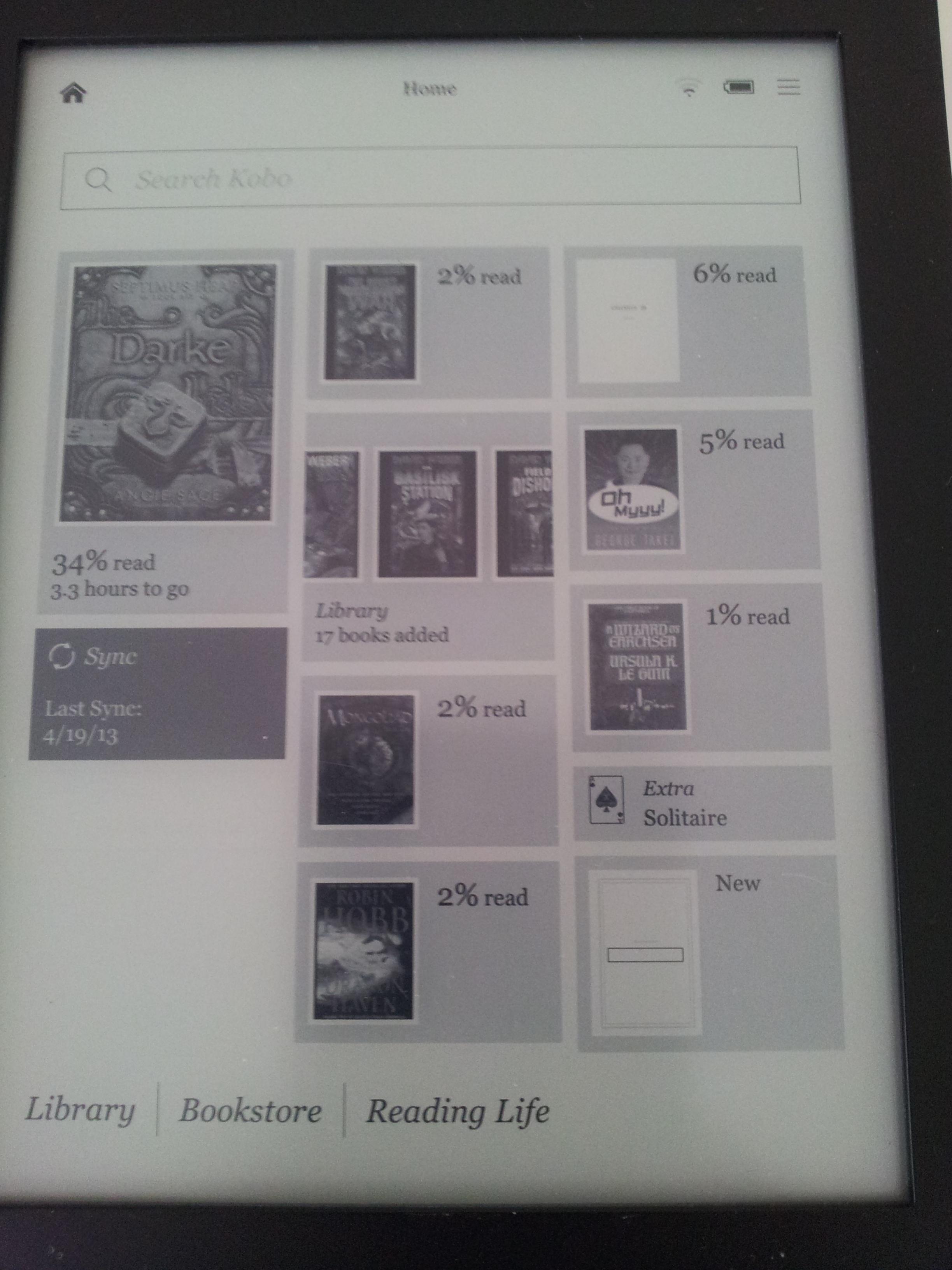 Device: Kobo (loaned out), KoboTouch (given away), KoboVox, KoboGlo, AuraHD