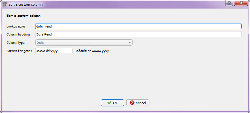 Here are screen shots of my custom column, and how I am populating it within the Goodreads Sync customize. Note: I only use the standard Goodreads shelves, so I am using a Text column with set values. You can change this to be any other text type if you use others, or just add the extra values you need to the set values of the column. I find using the set values makes it easier to capture when a book is moved to a different shelf. I have also including a screen shot of my Date Read and My Rating custom columns. I hope this is helpful. |