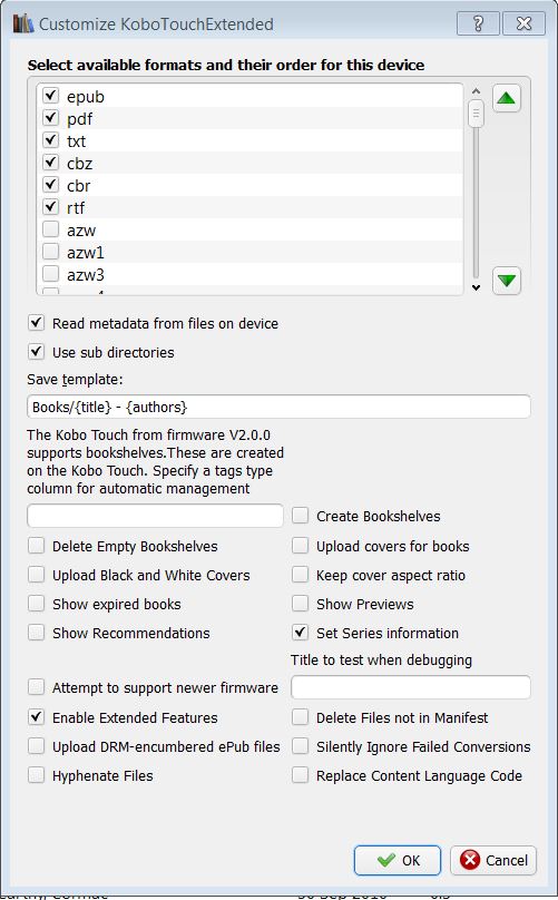 May I report my experience, for there were droll things happening. I've got the Kobo Touch, Fw. 2.5.1. Using the Kobo Tweaks. first, I disable the Device Interfaces 2.0.10 (both of them), with the Reader unplugged and enabled the Extended Pugin. I connected the Reader with the computer and sent three books from Calibre to the SD-card. All were free ebooks, two of them by Gutenberg. Book A: Without any manipulation by me with Sigil; Book B: Slight manipulation, such as text indentation and chapter splitting (TOC); Book C: "Hard" manipulation incl. insertion of drop caps with imported font. What happened was this: In all cases the bottom and top lines (author/title) showed correctly. TOC also. But: In A the bookmarks worked completely fine. In B bookmarks worked, but lead me steadily to the beginning of each chapter that I was reading, even having stopped at an ensuing page. In C bookmarks didn't work at all; at every opening of the book I see the cover with the remark: 1% read. Same reaction when I bookmarked manually. Drop caps as imported font disappeard, text indentation likewise. Only text jusitification is the same as before. During the test even once appeared the notion that I had removed the SD-card, but immediately the reader "recovered" from this. I cannot explain to me the different behaviour in those cases. |