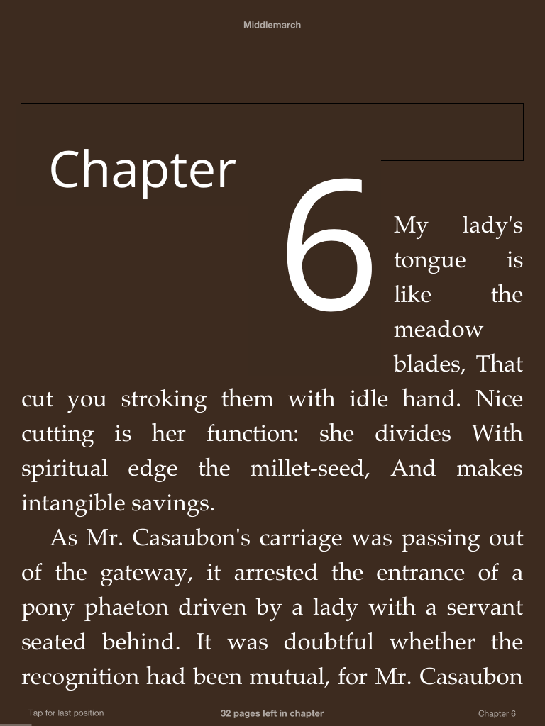 Most people think background textures/images are a useless gimmick, but I think most people are prejudiced by all the horrible / garish textures/images they've come across and don't consider it's entirely different when they can choose their own. To me, having subtle variations in the background makes it easier to read than a solid color. I attached an example of background image in Stanza and solid color in Marvin. Stanza lets user import a picture for background and set its opacity; some interesting things can be done with this. Another useful thing is if none of the supplied background colors suits me exactly, I can just create an image with the solid color I want. Voila. PS: my idea of 'subtle' may be someone else's idea of nightmare, but that's why customization is good. |