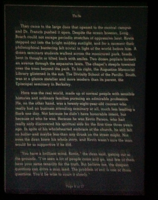 All I can say, it's better for my eyes for reading in darkness than the iPhone or iPad ... |