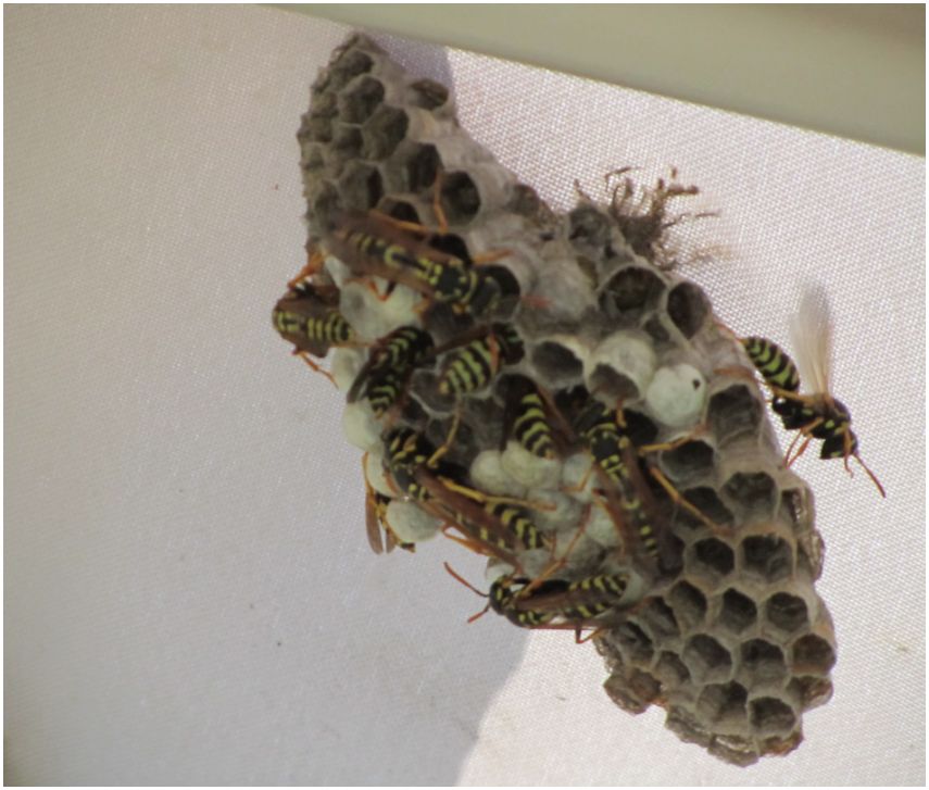 I'm celebrating that I got 4 paper wasp nests taken down. I used high power water spray to knock them down and kept spraying the wasps that were flying around. |