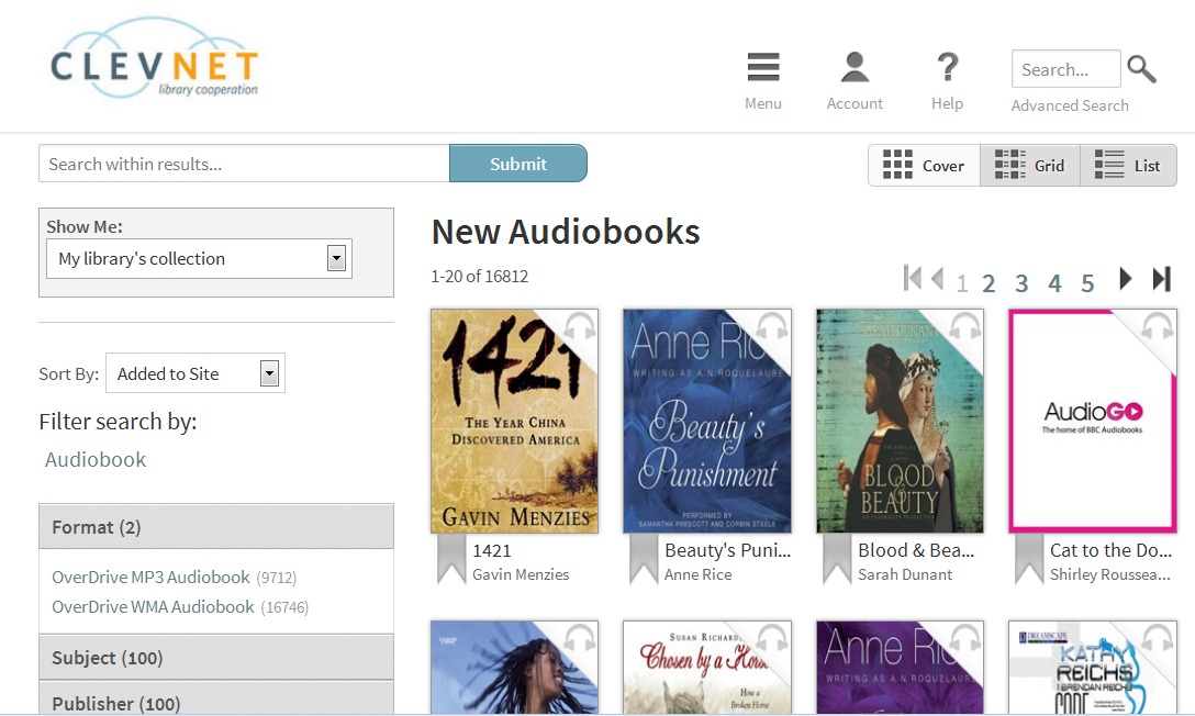 Maybe you're using the mobile site *link* on your desktop. I happened to be signed into CLEVNET. When I did an advanced search for WMA audiobook format, it brought back 16,746 results!