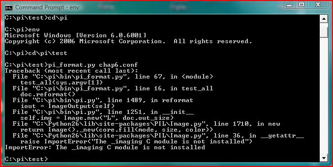 I have extracted the "pi" folder to my C: drive and open a cmd prompt window and cd to the pi directory and then I am stuck and can get nothing else to work. Note that I am trainable. I asked for this type of basic help for mobidedrm and can now use that script quite nicely. I just need to learn how to get it to run. Thanks in advance. EDIT: OK, I think I have figured out that the original script from caritas does not run under Windows. I did download the Windows version by ashkulz, but am still stuck. I do have python 2.6 and PIL installed. EDIT yet again: here is a pic of the error message I am getting. Last edited by daesdaemar; 12-13-2008 at 11:17 AM. |