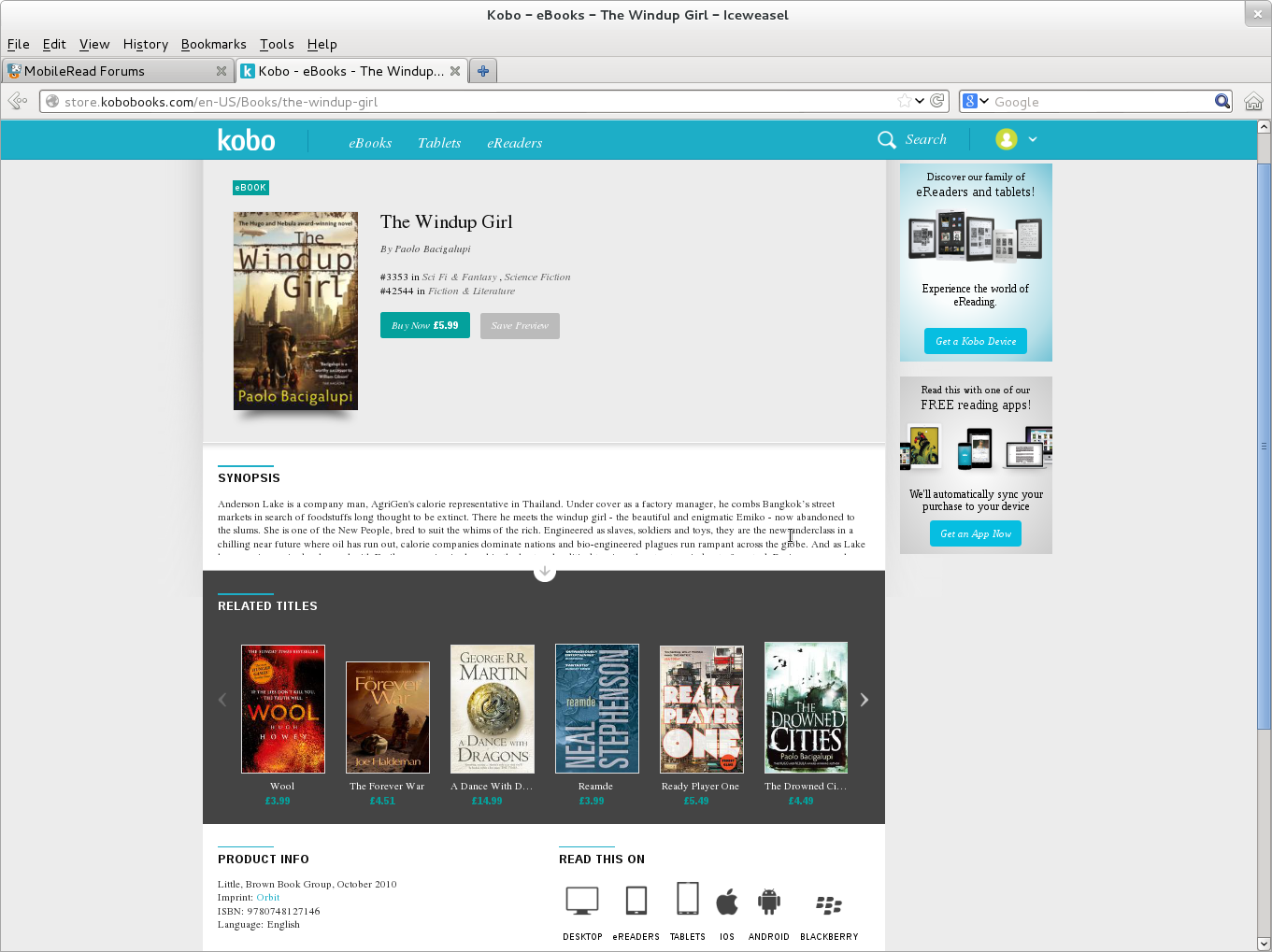 I want to just buy and download (DRM-free only), now I can't do that. The "Kobo for web" option is terrible, hangs in Firefox. More $$$ for Smashwords if they don't fix this. |