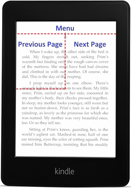 Amazon, are you listening? I love the Paperwhite, but if I could make one suggestion it would be to extend the next page turn area to include the bottom third or so of the left side of the screen. I also hold me reader in my left hand, and it's much easier to use two hands for a page turn rather than try to extend my thumb to the right half of the page.