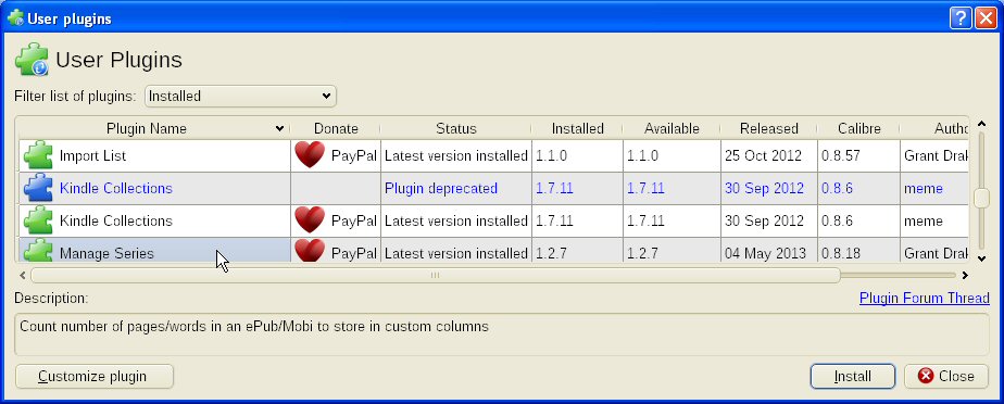 But I noticed something else strange happened. I see a note that there is a Plugin update (there was none in main 42) Launching that, It informs me that the Kindle collections is depecated. So I uninstall as recommended. Visiting the MR Index, the PI is still listed as active, so I use preferences to install it. Same message update on restart ![]() There is something about that PI as I have 16 others installed |