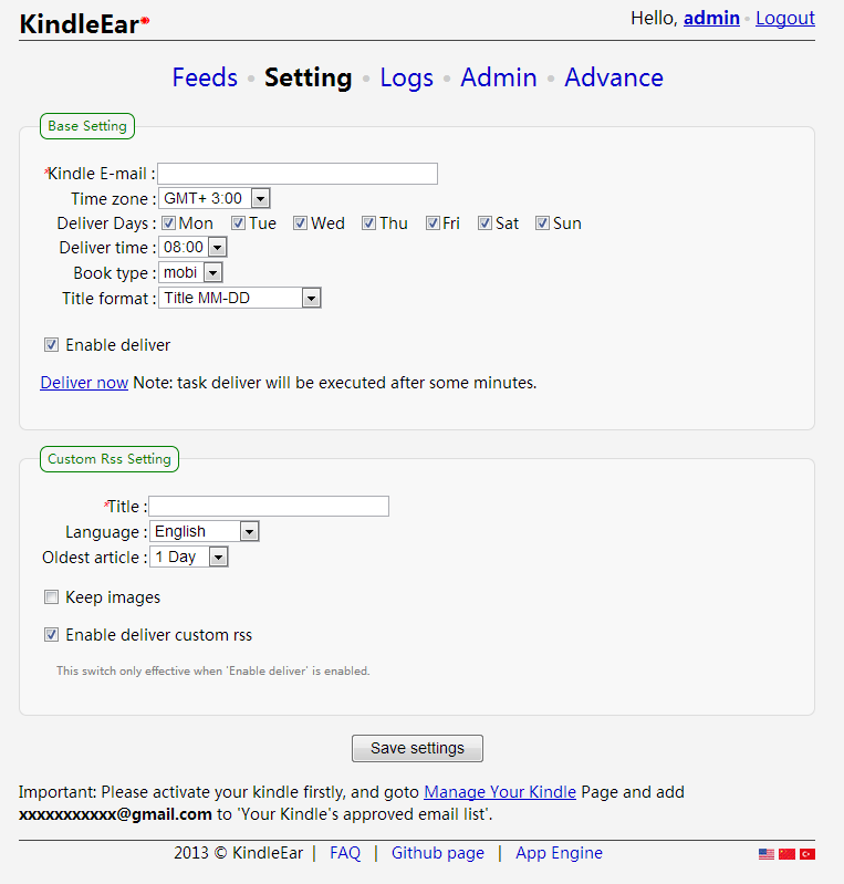 Please download version 1.6 in github to deploy. https://github.com/cdhigh/kindleear |