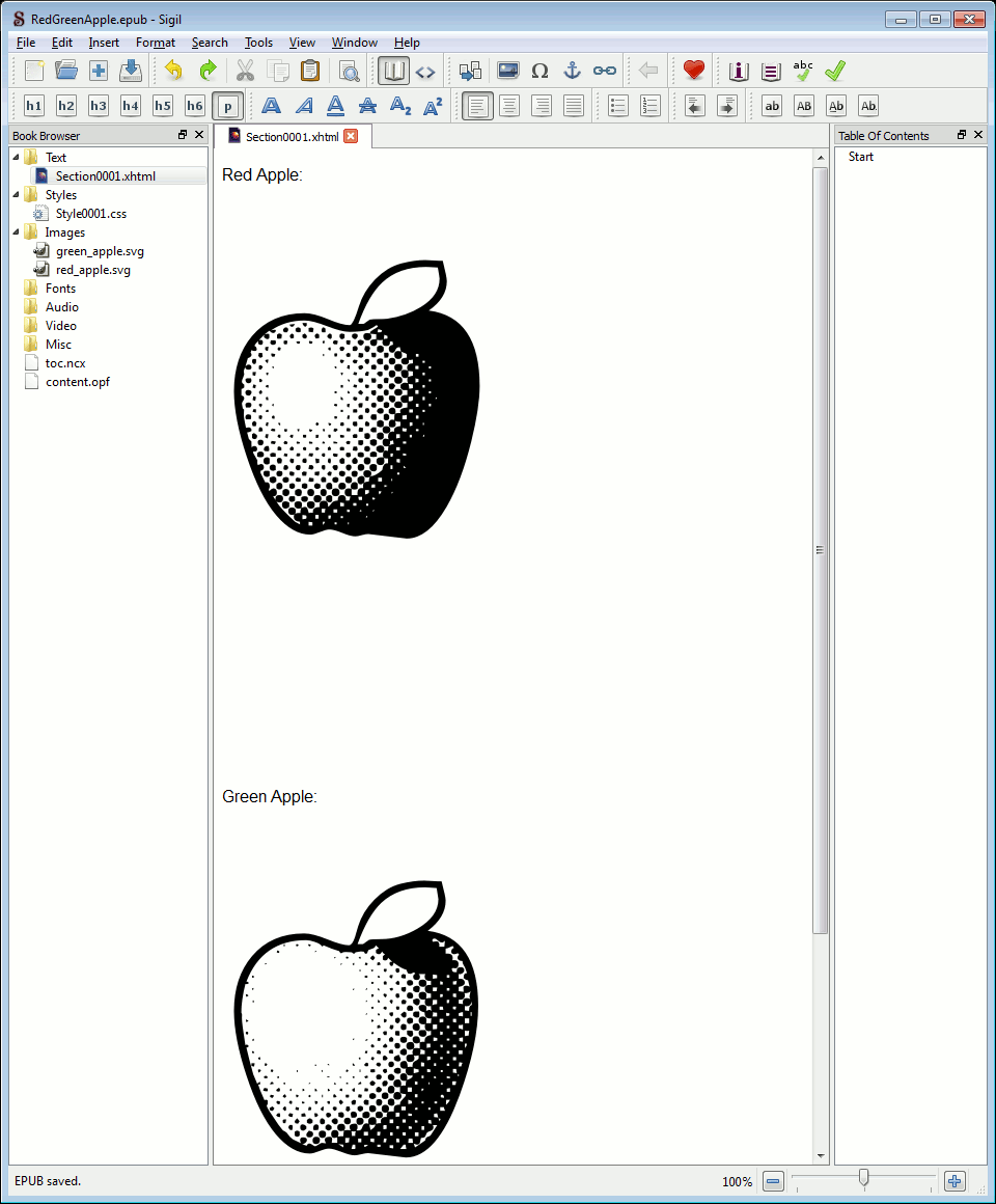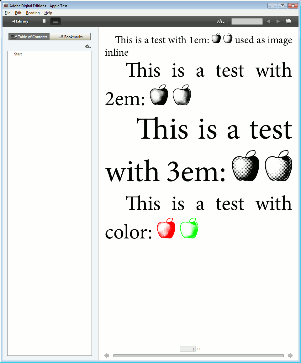 <p>This is a test with the <img class="svg_img" alt="red_apple" src="../Images/red_apple.svg" /> used as image inline</p> ![]() Below you can test my ePub. Regards Rubén Last edited by RbnJrg; 09-22-2013 at 05:04 PM. |