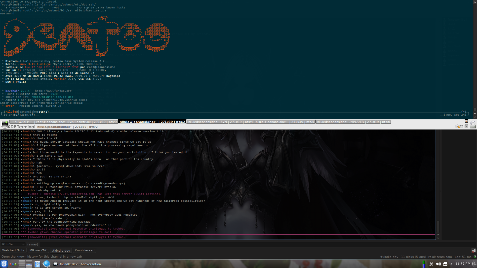 So far, so good... Tricked everyone into playing nicely, tried to handle the whole OpenSSL mess nicely on the K4/K5, hacked around the config paths to make it all neat in /mnt/us/usbnet/etc, and it seems to be working, yay \o/.