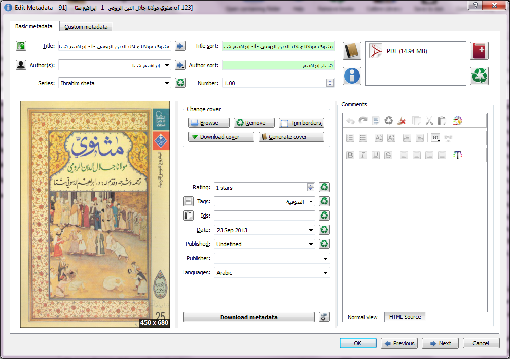 1. Are you able to enter Authors, Titles etc as RTL Arabic text into the Metadata Edit dialogue etc and see it on the Book List, Book Details etc?