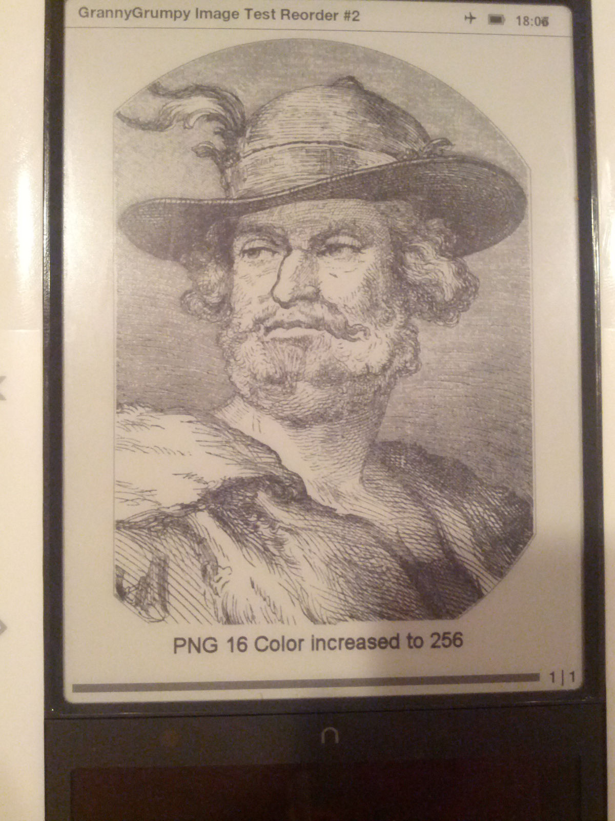 grannyGrumpy, I just took a look at your test EPUB in your first post... Perhaps it might be best if you stick a few different types (4 gray, 16 gray, 256 gray) of the same exact image in the EPUB. This would make it easier to A/B/C compare on a device.