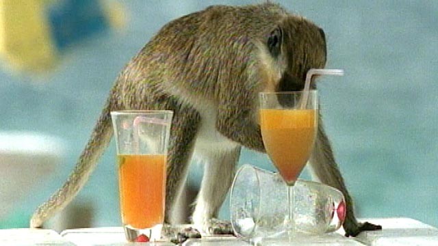 Vervet Monkeys (notorious on St. Kitts for stealing tourist's drinks.) Has extremely high blood pressure (280/180 mm Hg) (excluding humans) |