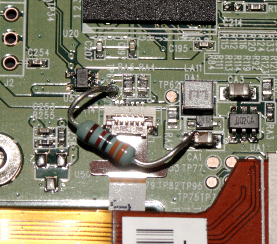 There is just one strange thing; now when the backlight is on, the kobo emit a hiss sound from the place the resistor is... No hiss when the backlight is off. I tried removing the resistor and putting it back again, but the hiss is still here. Do you have a hiss too on your device? If no, is there anything I can check to find what's wrong? thank you
