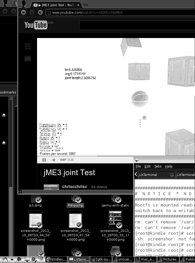 I then run kindlevncviewer on the Kindle, with the setting -encodings hextile, to connect to Kindle's localhost:3