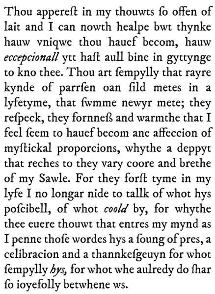 <p class="big olde PI">Thou apperest in my thouwts so offen of lait and I can