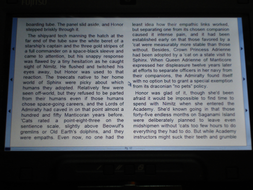 Thanks for the pics cyan. Very nice of you to do the side by side screen shots with Ebookwise and the Sony reader. The tablet actually has more "screen real estate" than I thought it would. It's still a contender for me at least. I'm also looking at the hp Pavillion 12.1 in tablet.