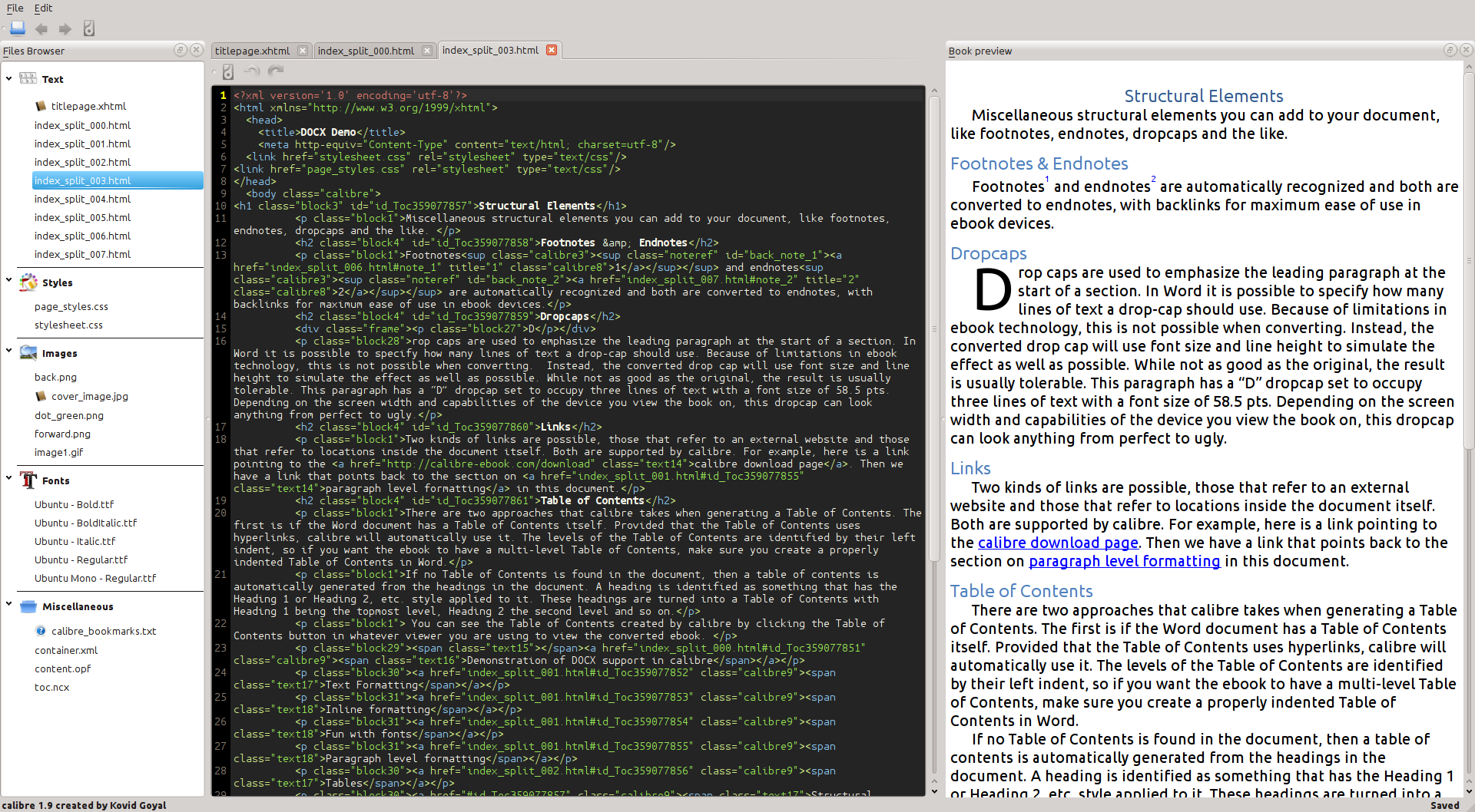 Anyway, this post was mainly to inform people that might be watching this thread that development work continues. The code is in the gui2/tweak_book and oeb/polish directories. |