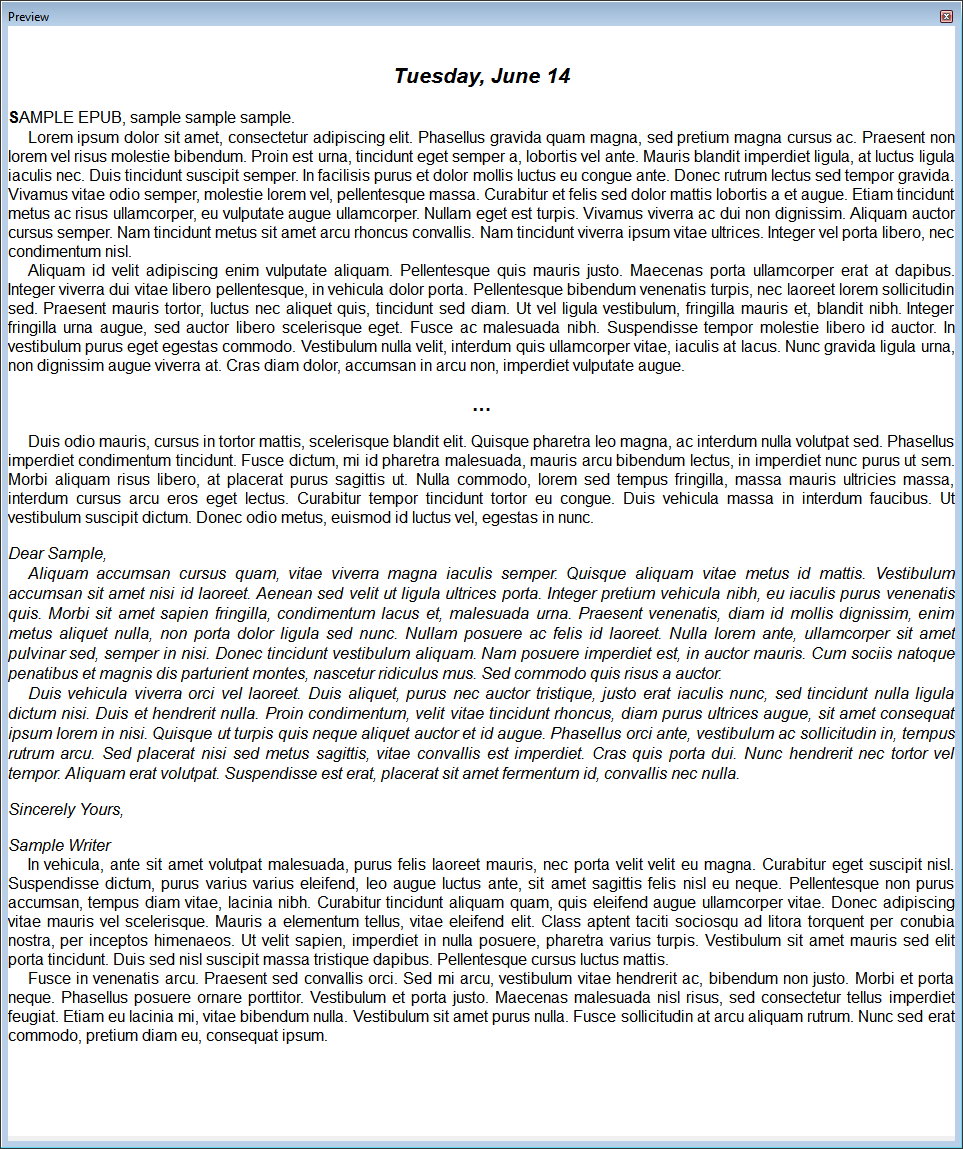 Side Note: Probably not a good idea to include such "reset" code in your EPUB... some conversion tools probably won't take too kindly to that. I decided to just scrap/redo his CSS from scratch, and replaced it with my tried/true tested minimal CSS that I use in all of the books I convert. According to AuthorGreg, my cleanup seems to have converted through B&N fine, and this book is back on sale looking better than ever!