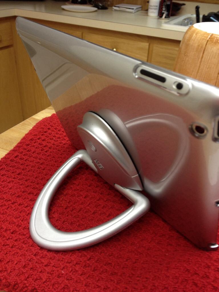 With this you can carry it securely like a briefcase, and then it converts to a portrait or landscape stand that goes to any angle. Or you can grab it from the back and hold the iPad one handed. Most of the time I use it like a stand propped on my belly. I have a review on my website, which is linked from my profile, I think.