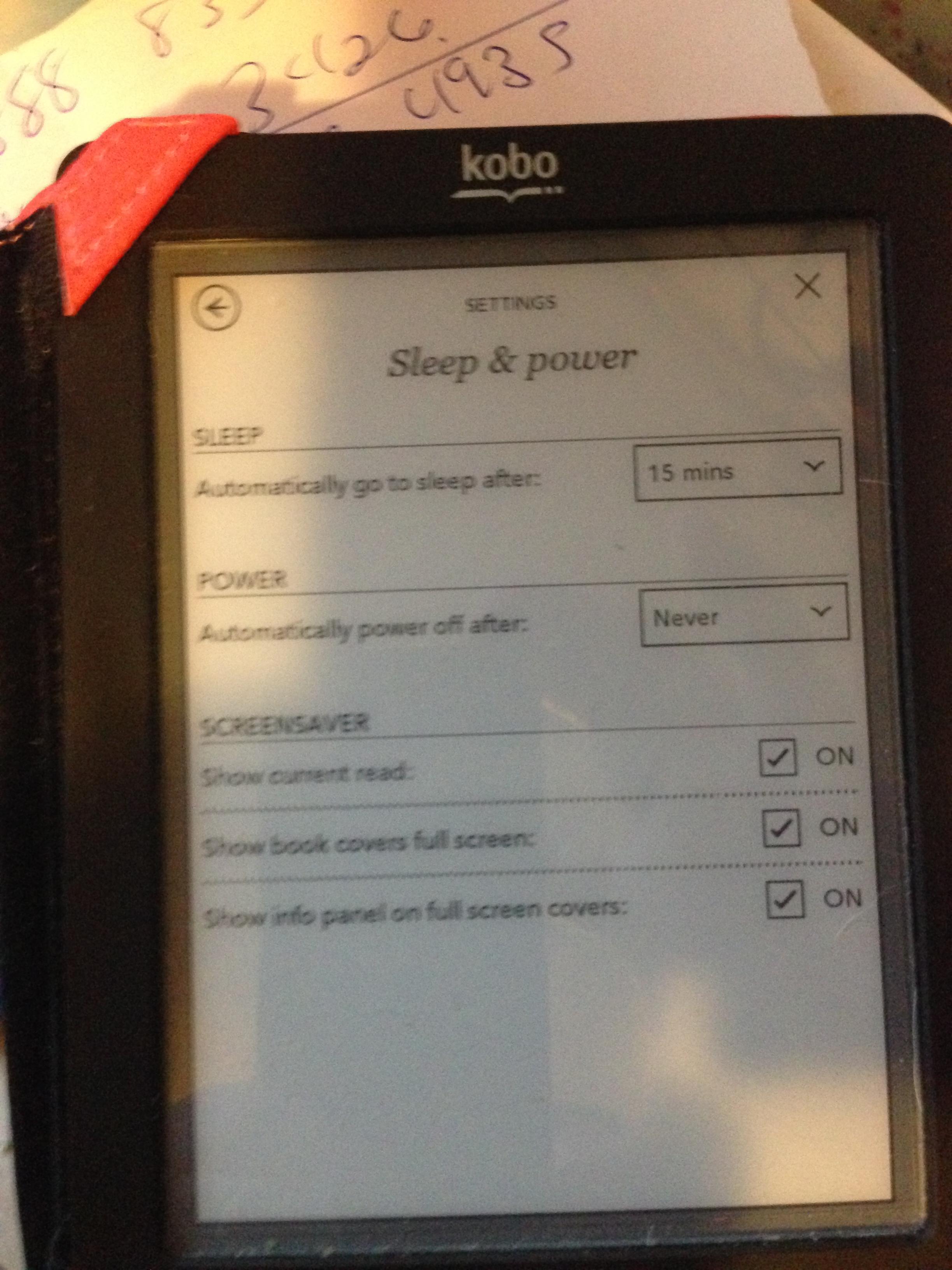 Also could you try this and tell me what you see on Power Off (and on Sleep); Settings | Light, Sleep and Power | ScreenSaver, Show current read ON, Show book cover full screen ON, Show info panel on full screen covers OFF.