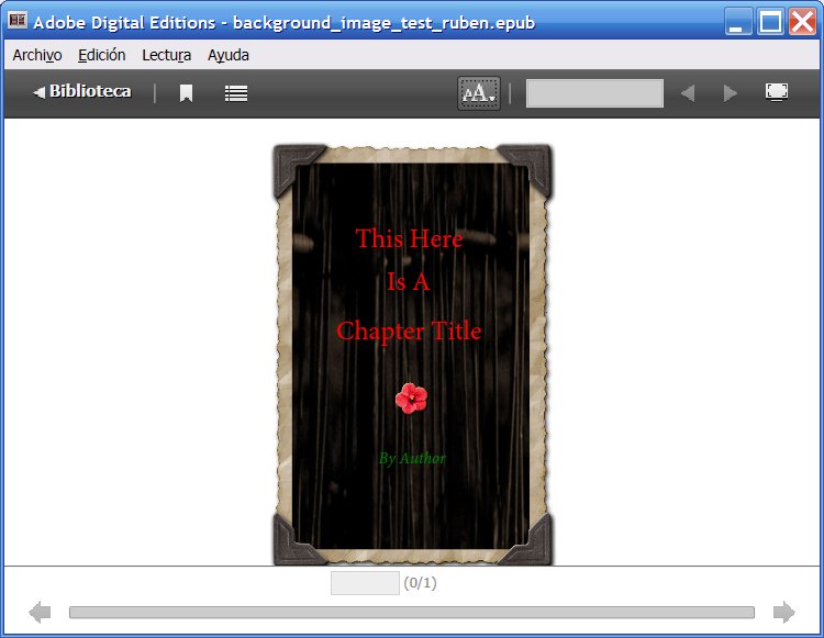 That's interesting, as I've tried the epub there out in both iBooks and ADE, and indeed it seems to work just fine in both -- although looking at the code it's apparently making use of a background image (which supposedly should not work, or at least not be supported). I'm not sure what to do. I want to do it "right", and then this example you gave here seems to work, and yet it's "wrong" (even though it validates, once I add the title/language in). I just spent the last little while trying to put together something that I hoped would work based on what the guy did in that previous link I provided (here's the link again to save you scrolling/searching for it)... https://www.mobileread.com/forums/sho...d.php?t=215430 I created the attached file based on that -- pretty much guessing my way through the CSS and adapting it into what I want to do. If you look at the code in Sigil, you won't see the background image in the preview, BUT if you look at it in ADE, the background shows up, with the title text (etc.) overlaying like it's supposed to, and it's almost exactly how I'd like it to be except for the fact that I'm not sure how to get the image to resize itself to fit within the window and no bigger. And, I don't know how to get it to work in iBooks (which it doesn't). ![]() I'm by no means an "expert" at CSS, though -- I wonder if perhaps this might have provided some inspiration for someone else to come up with a workable solution? It'd be so cool if I could get this to work right, without using background-image (even though RbnJrg seems to have no provided a solution that seems to work that way!). in advance!