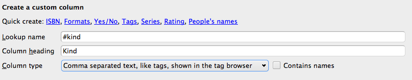 In the "Create a custom column" dialog, the lookup name should be "kind", not "#kind" And in Preferences->Look and Feel->Tag browser, "Categories with hierarchical items" should be "#kind", not #genre. |