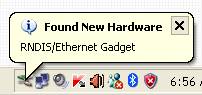 OK, when you get that "Found New Hardware" what do you see when you right-click on that icon? Also what do you see upon Mouse-over and upon right-clicking on the network icon next to it?