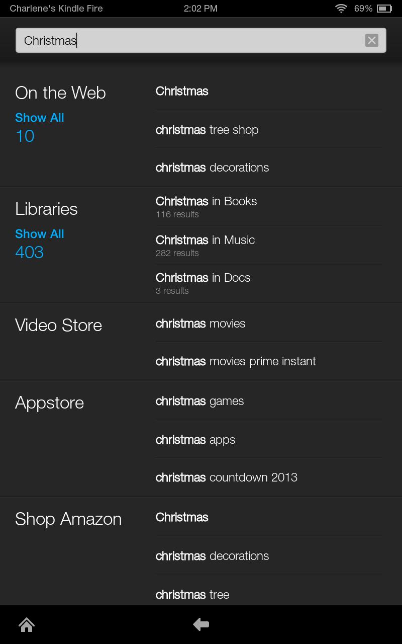 On my HDX when I do a search it clearly indicates where I can find the item I'm searching for either in my library, in the Bookstore, On the Web, Video Store, Appstore and Shop Amazon. So I know exactly what I'm looking at. If I'm looking for a book from a series it lets me know if I have it in my library, if not I can purchase from bookstore etc.