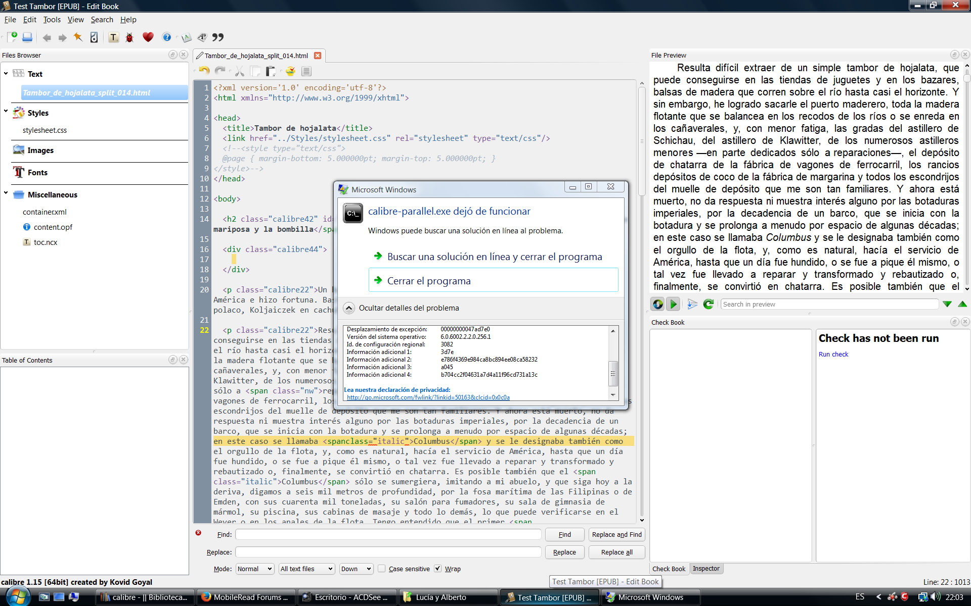 When I edit nearly any tag in the book I'm currently reading and I make a mistake (as example from <span class="italic"> to <spanclass="italic"> in line 22), I automatically get the error shown in the screenshots. After this error, Preview is no longer updated.