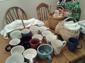 Lots of things in lots of cups at my house last night. We're starting some new traditions this year, so I had the whole family and a couple of friends over for Soup Night. I've been picking up soup mugs (or just large coffee cups) from the thrift store for the past few weeks, and made 3 soups and some bread. It was relaxed and fun - can't wait to do it again!