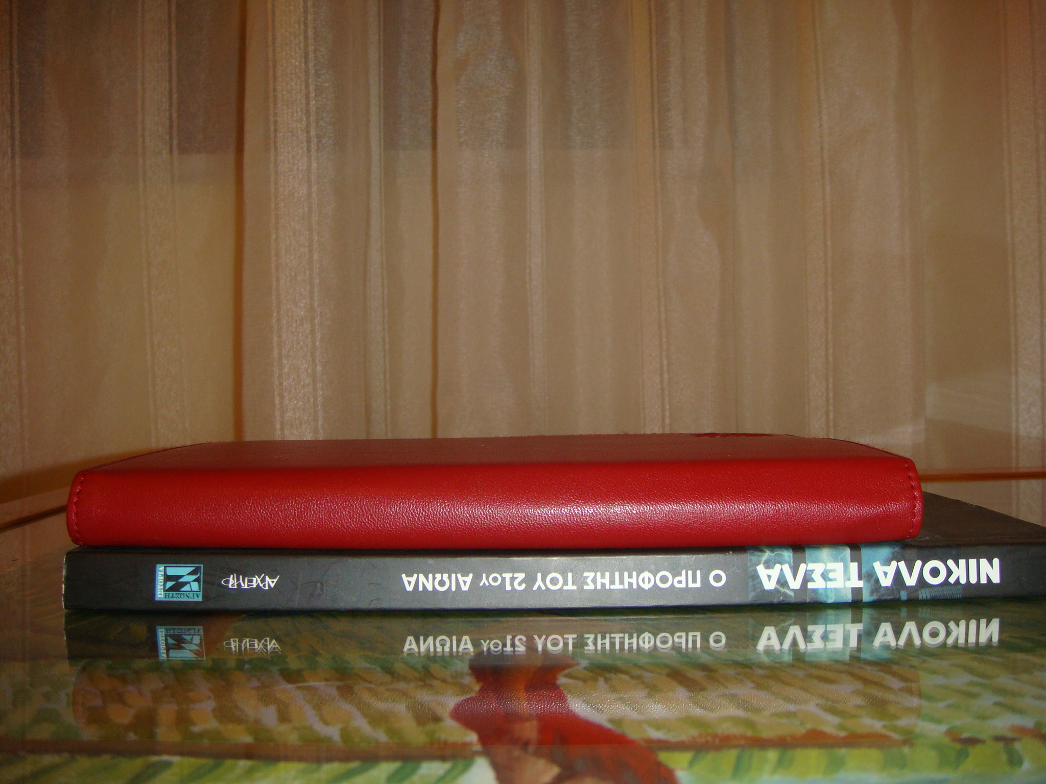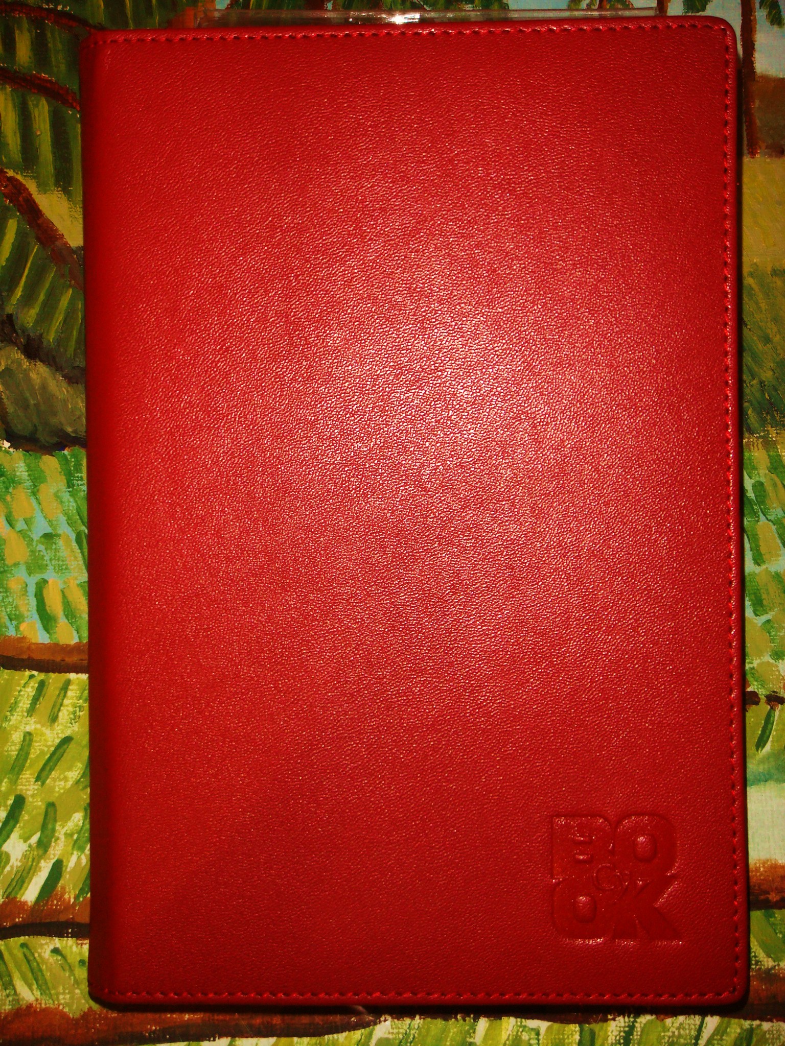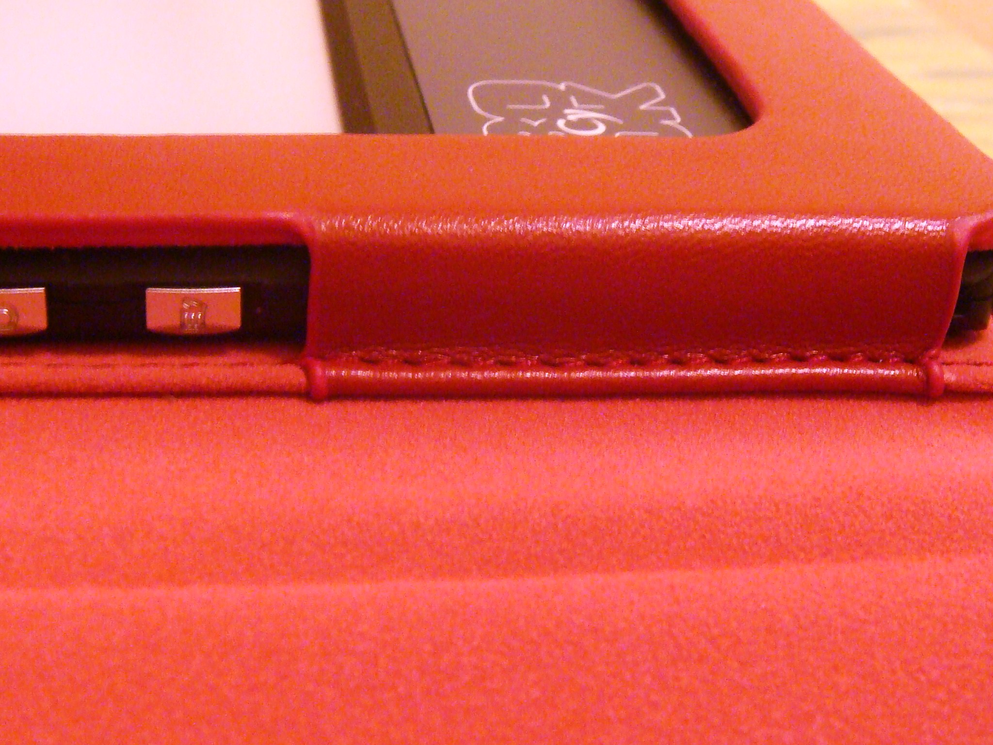 Just one thing, The book in the cover is on the right side, but sometimes I like to read with the book on the left side (in bed, lying on my side), and what I've been doing lately is putting the book the other way around in the cover, top on the bottom side, which allows you to turn it around. The openings of course do not coincide any more, but the only important button is the one to turn pages, and if you press on the leather where the button is situated it will work fine.