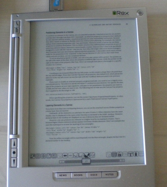 (2) I also want to use the device for work, where most documents are MS Word and PDF. Of course, all docs can be easily exported to PDF, so PDF handling becomes critical. Whilst BeBook certainly seems to handle PDFs okay, the Iliad seems to be the best in this area - the larger display and the native PDF support seems to provide this.