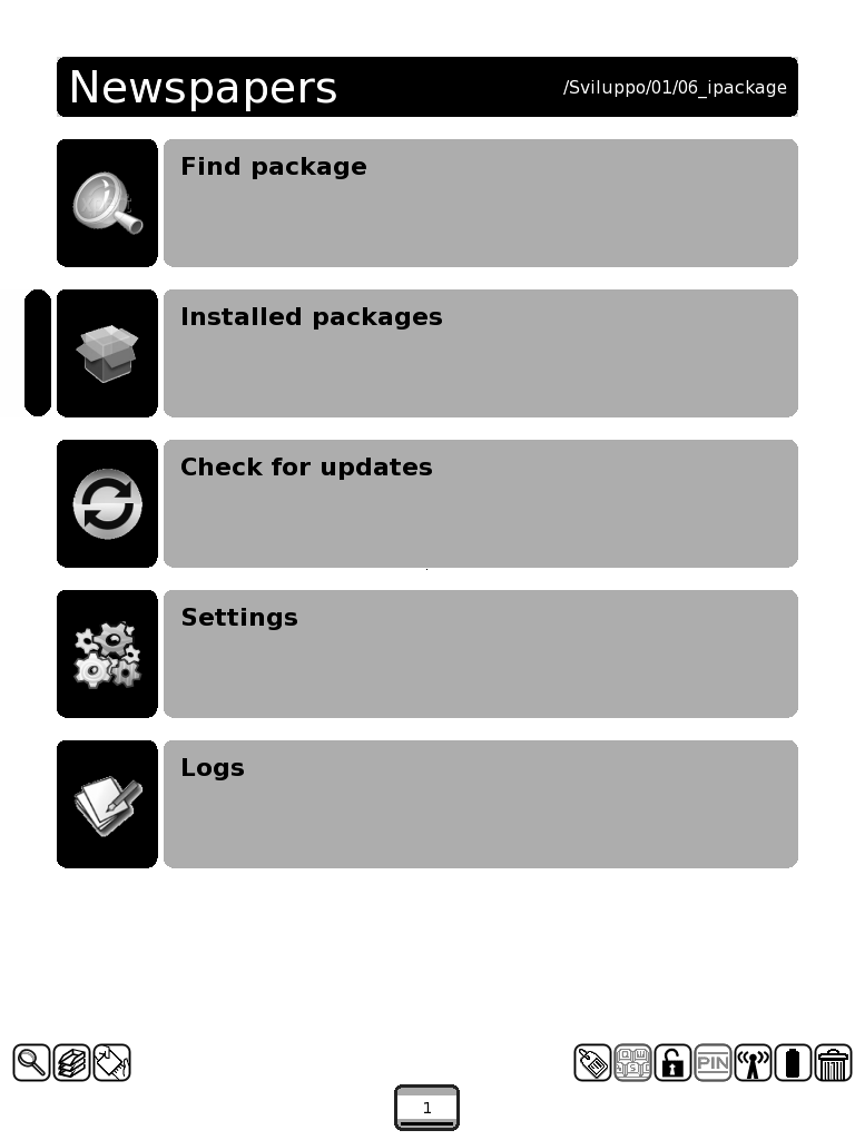 A package manager should be included in the iLiad software (like apt/aptitude in Debian), to make it easier to install new software and updates from this single repository. Maybe we could port the GPE Package Manager (a graphical front-end for ipkg, http://gpe.handhelds.org/projects/gpe-package.shtml). I'm willing to look into it, but currently I have a lot of projects that I want to spend time on. |