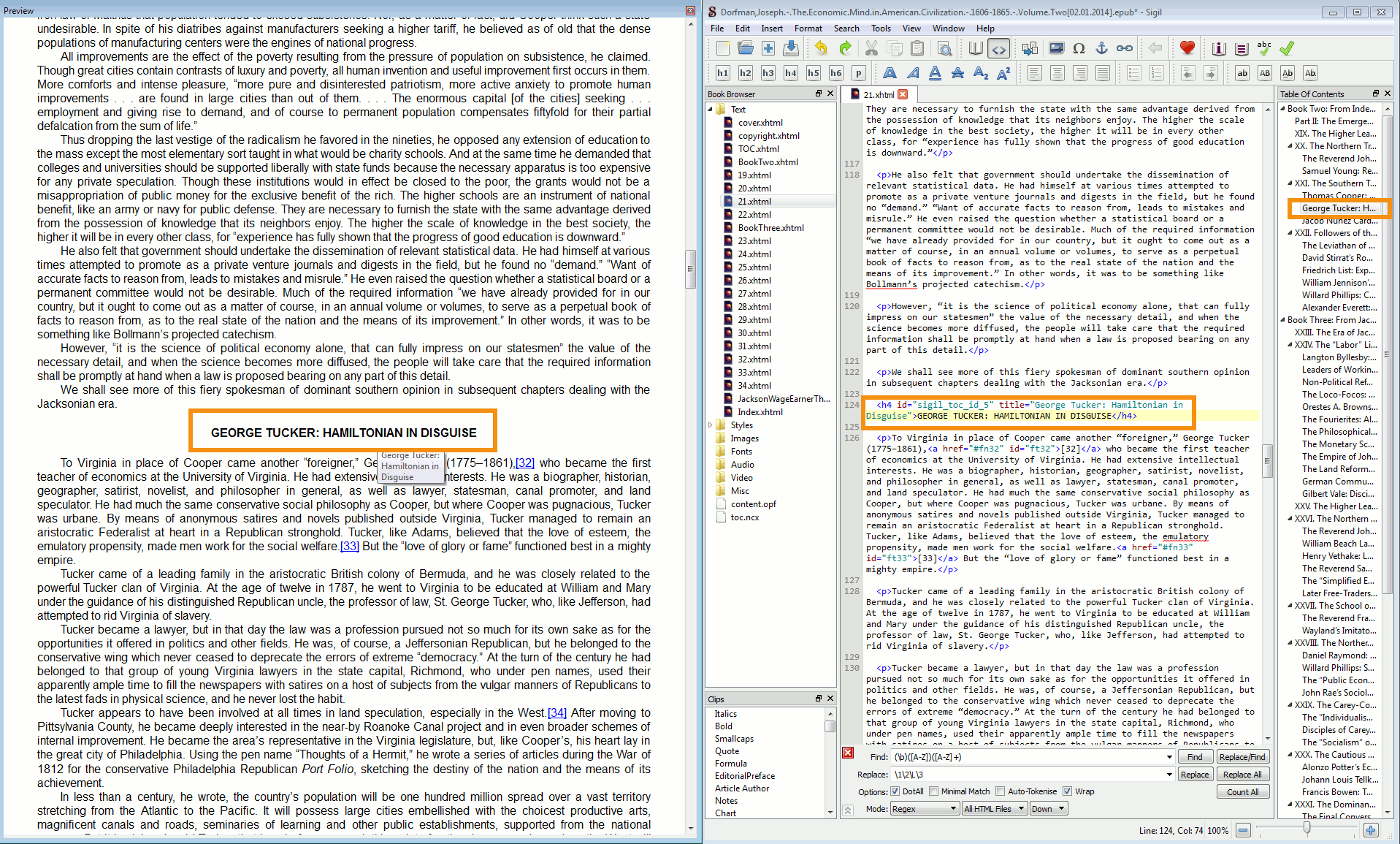 Some times there's others like a section. I got it to the point where the tags are pretty consistent, but making text title case in BV is a lot of work Is there a good F-R that will convert things like <h1>CHAPTER ONE</h1> into <h1>Chapter One</h1> I can use it for other tags but I'm stuck on the title case part There is a TitleCase stored clip in Sigil but I couldn't seem to get it to work right: \u\1 Thanks |