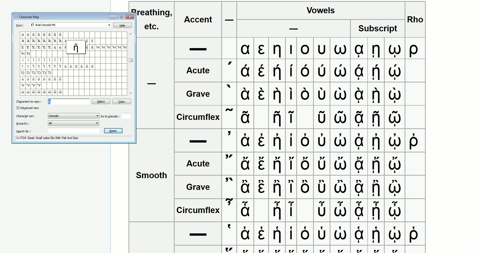(Plus Wikipedia typically has much better/more logical organization, like those accent tables make the Greek a thousand times more sense than just having them plopped around in unicode # order).
