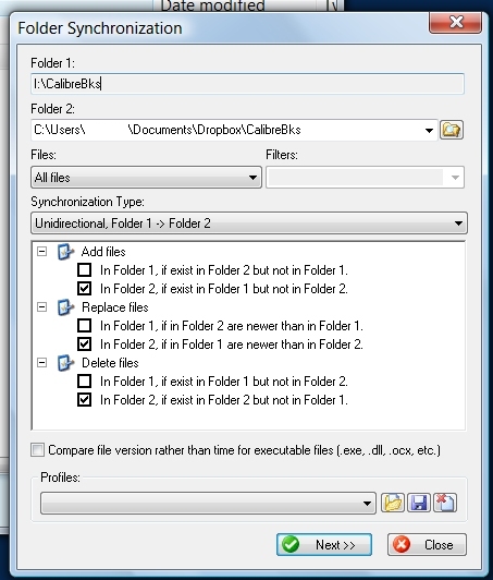 I use manual sync program myself. I like total control but most Sync programs are like greek to me and I don't trust them not screw up with all the settings. So I use the little sync add on that comes with File Menu Tools for years and I trust it. It works perfectly and is so simple to use as you can see in the screen shot that's all there is too it. You just right click on the source folder and then choose Synchronize and this little window pops up. it remember the settings most of the time but there is option to save it as a profile if you want.