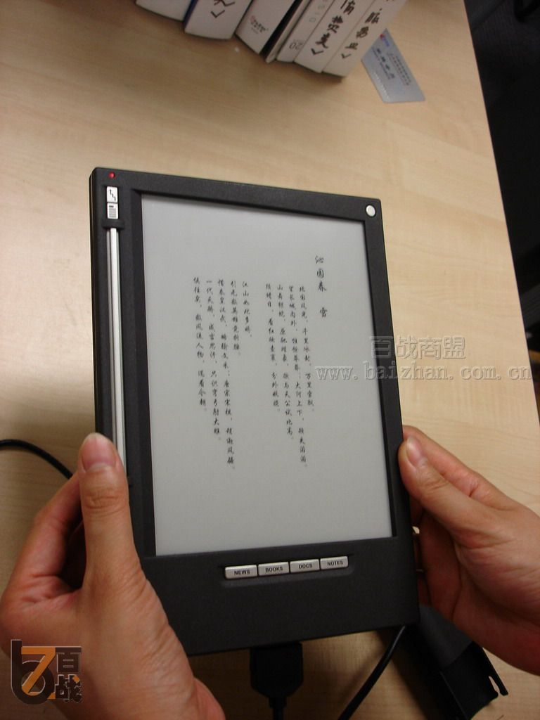 1. Reporter: What is the connection between ebook reader devices and current popular web ebooks? Yang Hong: First, let me quote FangZheng Electronics Vice-President ZhouQin's interview with XinHua Network: "There are two definition of eBooks: In the (first) restricted sense, ebooks refer to handheld reading devices. In the (second) general sense, ebooks encompasses the whole complete process of write-ups (or drafts?), editing, publication, distribution to reading. Ebooks can be read/browsed in a handheld ereading device and can also be read on a calculator's screen (!). Ebooks is not limited to the display of text, pictures and layout style of the original paper book publication, at the same time, it can include audio, video multimedia content. I feel that the [definition of a] ideal eBook device should be: To support high quality reading layout and format, and incorporate high-encryption for copyright protection (basically DRM); To have a good display screen that is suitable for reading; To have adequate storage space and ability to expand on such storage space; To have the latest input/output (original: communication, but in the context, he seem to be referring to input capabilities) technology for convenient update and change of content (it may also be referring to wifi as a means to change the whole content instead of modification of content on the device); To have good User-Interface (Literal: Man-machine interface), and under non-DRM situation, to support the widest range of content format. ... *phew* ... took awhile ... the following questions are not translated yet ...