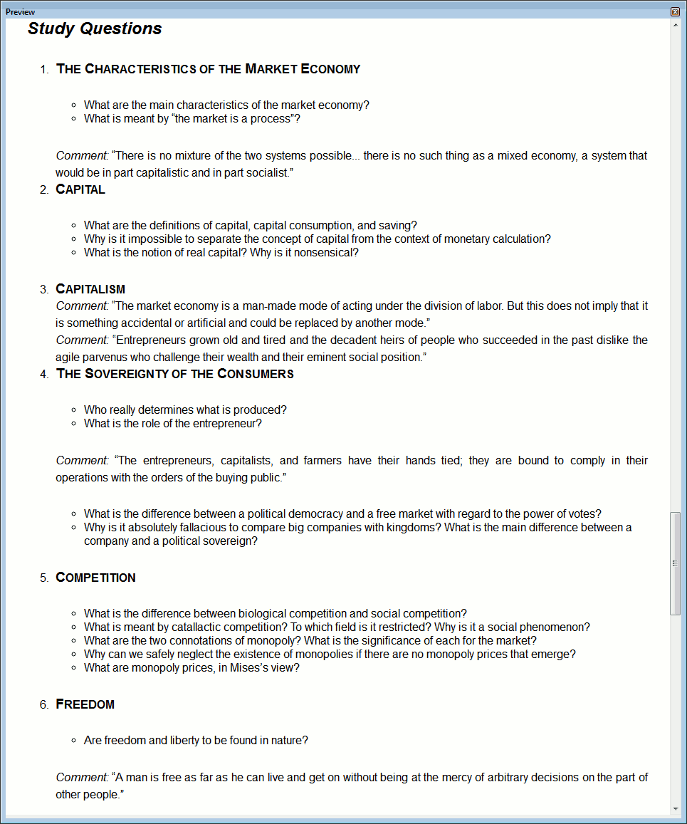 Future Formats <ol> COULD have some advantages such as not breaking across pages and/or being floatable to another page, if you were going backwards from ebook to print. You could also use more advanced CSS Counters to do the same sort of thing (again, left for a format BEYOND EPUB/MOBI): http://www.w3schools.com/cssref/pr_g...nter-reset.asp Now Indeed, the best way to tackle it CURRENTLY is to probably just transfer the number over as text (which is what I do). Much less chance of breakage across devices... BUT, keep in mind, that while the text may not change directly, let us say you DID want to create a second edition of the book with lots of edits. You may go in and change some text around, and this is where auto-numbering would see an advantage. Let us say you had a list of 30 objects, you added one in between, this will mean editing code it only ONE position, instead of ~30. Or let us say you wanted to swap from "number" format into "lowercase letters" or "roman numeral" format. Or let us say you had a nested list, and wanted to swap the inner list from "lowercase letters" to "roman numerals". It would just require a simple type change, instead of manually replacing all 30 "plain text" numbers. Side Note: Another advantage of automation is that it is less prone to human error. Another Side Note: I am noticing a lot of stuff I haven't noticed before, when trying to create a LaTeX version of a few of these books. Lots of places (especially chapters, sections, footnotes) are WAY better automated, than in plaintext form. Maybe something along the lines of: Code: