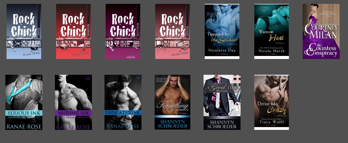 Well, I bought all 8 Rock Chick books, plus 5 others, for a grand total of $7.26. Not bad, I guess. At least my husband doesn't know, since I used my paypal account that I put money in from Swagbucks, Ibotta and an opinion poll site. It wouldn't be the amount of money, but the number of books. LOL (It's a mixed marriage. He hates to read and doesn't understand why I like it.
