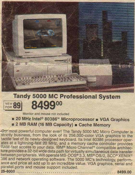 Or to put it another way, the CPU is 1/10th the speed of the Sony Reader processor and the 2 MB (16 MB max) is 1/64th (1/8th) the RAM of the original Sony Reader PRS-500. Both the Tandy and the Sony can use add-in storage (there is no hard disk in the Tandy at the $8,499 price point) and the "large" hard disks of the day were 40 MB or about 1/100th of the common 2 GB SD card for the Sony. Then again the Sony has a higher resolution screen but only in b+w and no mouse support or keyboard.